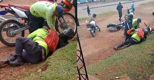 En el vídeo, se ve al motociclista con su casco puesto, claramente apretado por los inspectores de tránsito, mientras hace visibles esfuerzos para respirar y comunicarse. En medio de la tensión, el conductor de la motocicleta puede escucharse pidiendo reiteradamente que lo suelten, enfatizando que él no es un delincuente y que simplemente estaba cumpliendo con su trabajo.