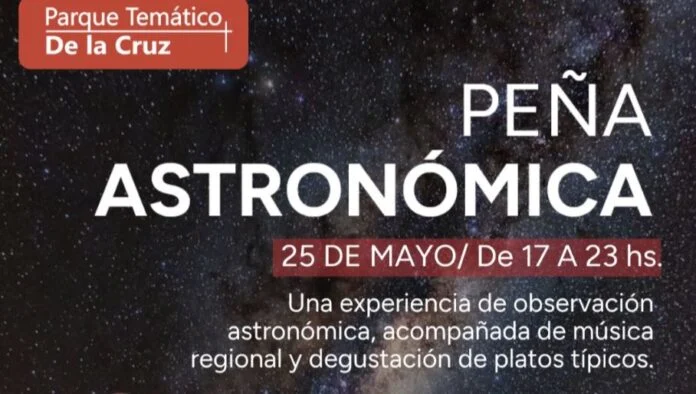 En el marco de las celebraciones por la Revolución de Mayo, el sábado 25 de este mes, de 17 a 23 hs, se realizará una “Peña Astronómica” en el Parque Temático de la Cruz, ubicado en Santa Ana.