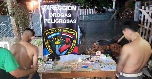 La irrupción tuvo lugar cerca de las 23:30 horas de ayer, en un domicilio ubicado en la Calle 34a de Posadas, tras varios días de investigación y trabajos encubiertos, que tuvo como resultado la detención de Andrés N. de 22 años y de Alan G., de 21 años, quienes se dedicarían al narcomenudeo.