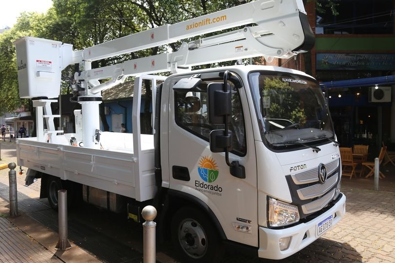 Este miércoles se presentó un nuevo camión marca Foton, equipado con un hidroelevador de la marca Axion.