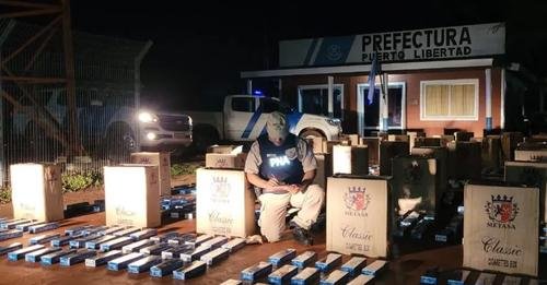 Efectivos de la Prefectura Naval Argentina de Puerto Libertad, secuestraron un cargamento de 35 cajas conteniendo 1.750 cartones de cigarrillos ingresados desde el Paraguay a través del río Paraná.