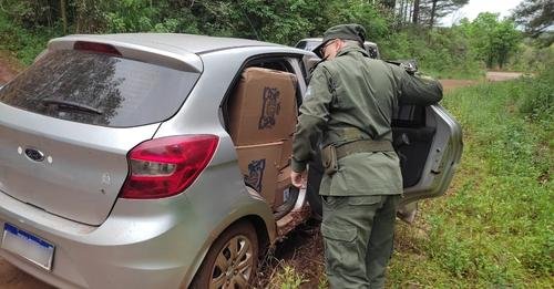 Un hombre al mando de un automóvil se vio imposibilitado de evadir a una patrulla de Gendarmería, por lo que descendió y huyó a pie por un monte. Trasladaba un contrabando de 7.500 paquetes de cigarrillos de origen extranjero.