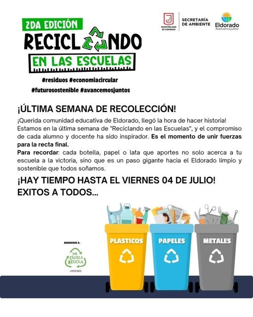Para recordar: cada botella, papel o lata que aportes no solo acerca a tu escuela a la victoria, sino que es un paso gigante hacia el Eldorado limpio y sostenible que todos soñamos.