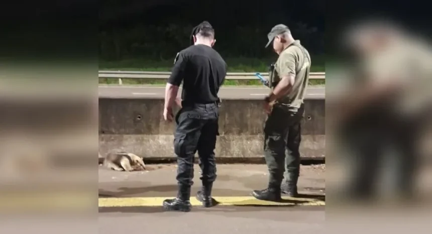 El hecho ocurrió a la altura del kilómetro 1397, en cercanías del Puente Yabebiry, cuando efectivos de la División Comando Radioeléctrico de San Ignacio que realizaban patrullajes preventivos detectaron al animal caminando sobre la cinta asfáltica.
