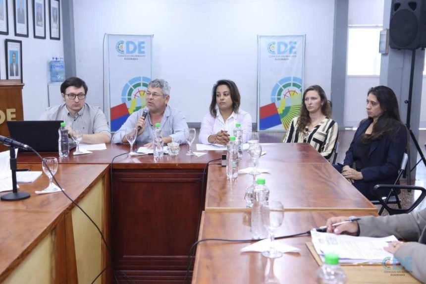 En la mañana de este lunes 24 de julio, en el recinto del Concejo Deliberante Eldorado (CDE), se llevó a cabo una reunión con la presencia de los Concejales; Dr. Augusto Daniel González, Téc. Agueda Saenger, Lic. Rosa Kurtz y el Vicepresidente; Téc. Bernardino Bobadilla. El encuentro contó además con la presencia de los integrantes de la Comisión Organizadora de la Expo Eldorado; Lic. Yésica Vargas, Dr. Víctor Bareiro, Valeria Rodríguez, Natalia Jenzer y el Secretario de Hacienda Municipal, CPN Francisco Sparhs.
