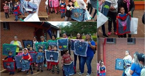 El equipo de la Secretaría de Ambiente de la Municipalidad de Eldorado entregó alfombras realizadas con residuos textiles a alumnos del nivel inicial de la Escuela N°896.