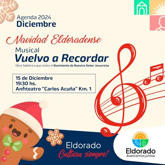 Continúa en marcha la agenda de actividades culturales para el mes de diciembre. Así, en el marco de la Navidad Eldoradense, este domingo 15 de diciembre se llevará adelante el musical «Vuelvo a Recordar», una obra folclórica que relata el nacimiento de Jesús.