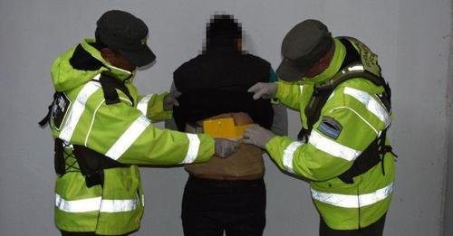Los gendarmes observaron que uno de los pasajeros de un micro de larga distancia llevaba un bulto sospechoso en la zona abdominal, debajo de sus prendas. Tras una inspección minuciosa hallaron tres paquetes con la droga. Quedó detenido.