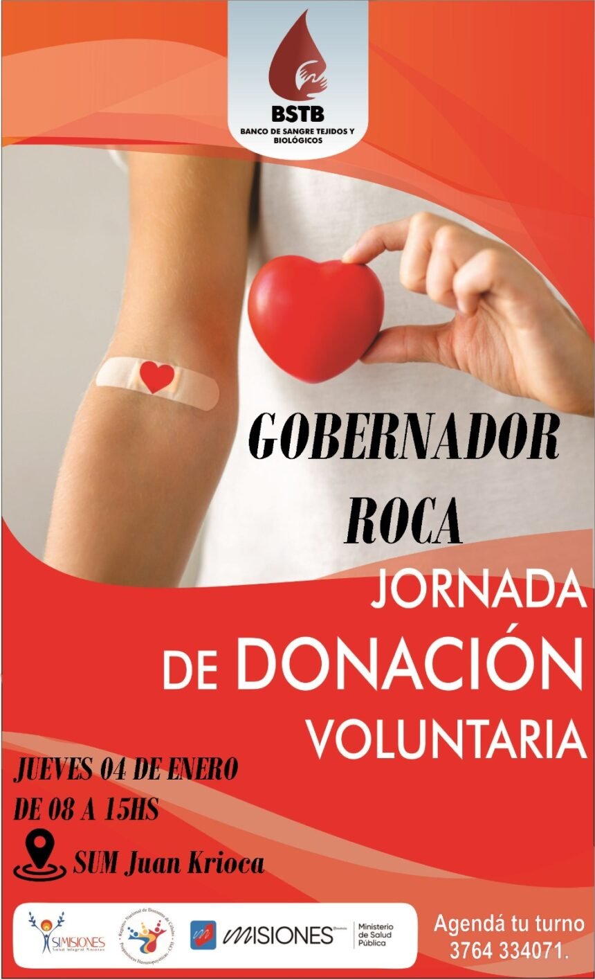Este jueves 4 de enero, el Banco de Sangre Tejidos y Biológicos de la Provincia de Misiones estará realizando una jornada de donación voluntaria de sangre en Jardín América y Gobernador Roca a fin de mantener el stock en las reservas de hemocomponentes.