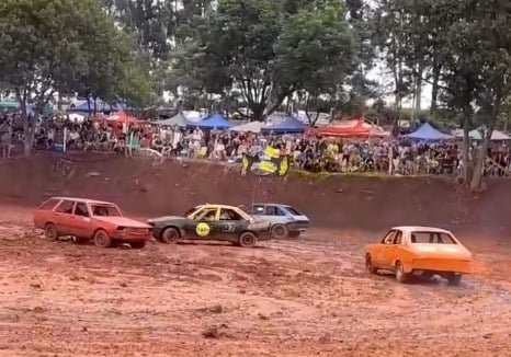 De Mora explicó que la práctica denominada Destroy Car consiste en autos que se arman directamente para ser destruidos y compiten en tandas de cinco vehículos en una pista circular de 70 metros. El objetivo es que solo quede uno andando. “A la gente le gusta la adrenalina y se viene a descargar. Vino gente de Córdoba, Entre Ríos, Buenos Aires, Brasil y Paraguay. Mucha gente que le gusta y tiene pasión por los fierros”, dijo.
