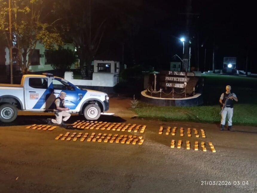 La Prefectura Naval Argentina decomisó más de 94 kilos de marihuana en un operativo nocturno en el río Uruguay, frustrando un intento de contrabando desde Brasil en la zona costera de San Javier.