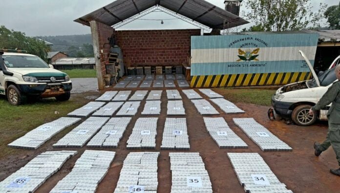 Gendarmería Nacional halló un vehículo utilitario sin ocupantes que se encontraba repleto de cigarrillos en la localidad de Andresito. Parte de la mercadería estaba esparcida a pocos metros, sobre la banquina.