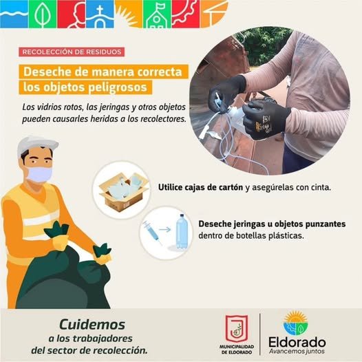 ➡️Se recuerda a la comunidad la importancia de tomar precauciones a la hora de desechar residuos que puedan representar algún riesgo para los recolectores.