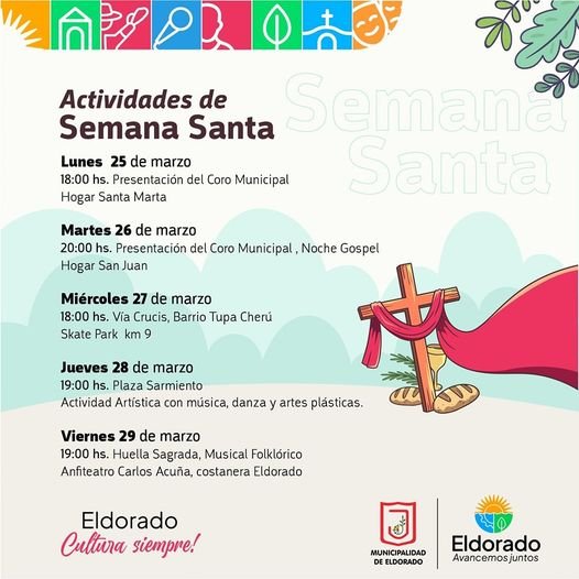 La Municipalidad de Eldorado, a través de la Dirección de Cultura, se prepara para vivir junto a las familias esta fecha cristiana tan especial con diversas actividades.