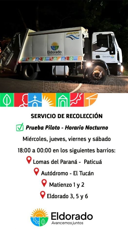 Desde la secretaría de Obras y Servicios Públicos se informa que esta semana inicia la prueba piloto del horario nocturno para el servicio de recolección de residuos.