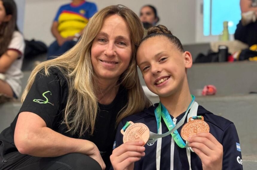 Integrando el equipo argentino, la obereña de 11 años logró dos medallas de bronce junto a sus colegas, las gimnastas Clara Sabic y Nina Braico, ambas de Buenos Aires. En primera instancia, subieron al podio en la Final por Equipos de la categoría AC2 Individual, donde Argentina consiguió el 3º puesto con 140.850 puntos, detrás de Brasil (151.250) y Venezuela (146.350).