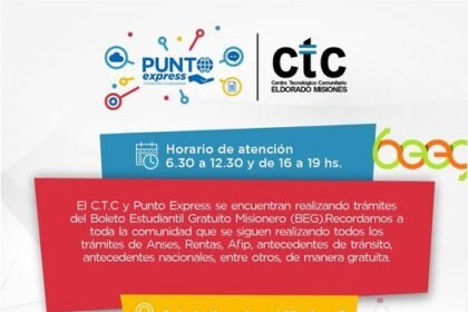 El C.T.C y Punto Express se encuentran realizando trámites del Boleto Estudiantil Gratuito Misionero (BEG).