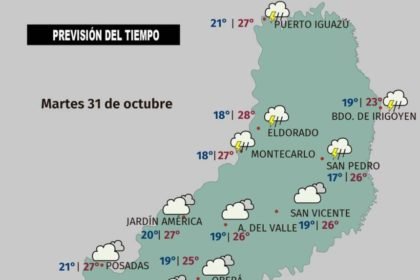 Martes 31 de octubreNubosidad variable en Misiones, cubierto en el sur al…
