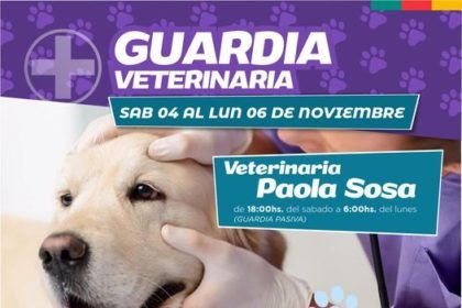 Este fin de semana se encontrará de turno la Veterinaria Sosa.