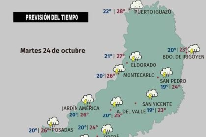 Martes 24 de octubre Lluvias y tormentas desde la mañana. La inestabilidad…