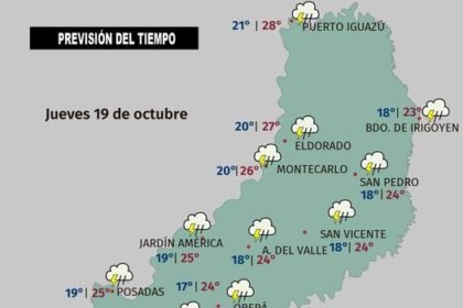 Jueves 19 de octubre Inestable con lluvias, tormentas y poco cambio en…