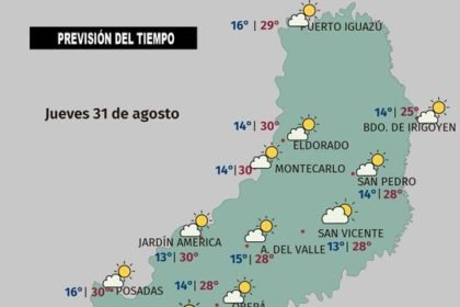 Martes 29 de agosto Aumenta la cobertura nubosa sobre Misiones, no obstante,…