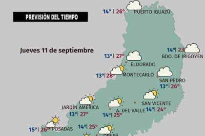 Jueves 11 de septiembre Tiempo estable en la mayor parte de Misiones,…