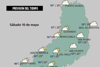 Lunes 12 de mayo Comienzo de semana con tiempo bueno en Misiones,…