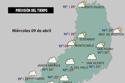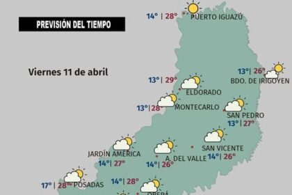 Jueves 10 de abril Tiempo estable en Misiones, cielo ligeramente nublado por…