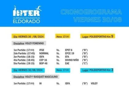 Con las Olimpiadas Estudiantiles 2024 oficialmente inauguradas, la Municipalidad de Eldorado invita…