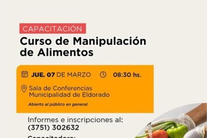 La Dirección de Recursos Humanos con el acompañamiento de la Dirección de Bromatología Veterinaria y Zoonosis de la Municipalidad de Eldorado, brindarán un nuevo Curso de Manipulación de Alimentos.