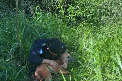 Policías de Villa Bonita resguardaron a Capitán, un perro atrapado en un pozo