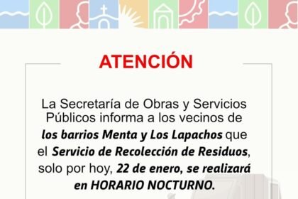 Eldorado | Hoy la recolección de residuos en los barrios Menta y Los Lapachos se realizará en el horario nocturno