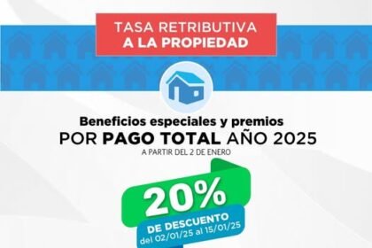 Recordamos que el Ejecutivo Municipal ha dispuesto el cobro anticipado de la Tasa Retributiva a la Propiedad, ofreciendo importantes descuentos para los contribuyentes.