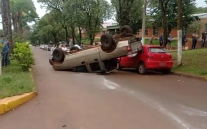 Eldorado | Una camioneta volcó al ser impactada por un automóvil