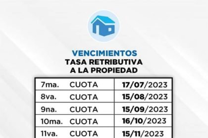 El 17 de julio vence la sexta cuota de la Tasa Retributiva a la Propiedad