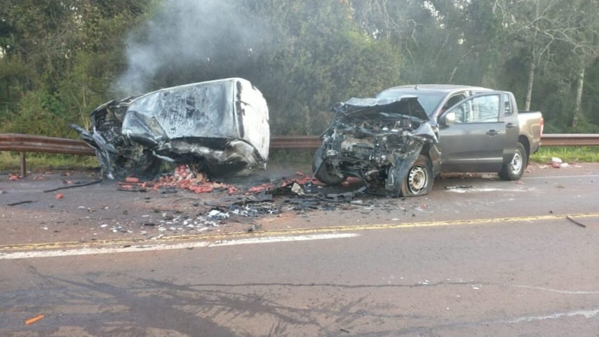 Este sábado en la mañana, dos personas fallecieron en un siniestro vial ocurrido en la ruta nacional 12 al kilómetro 1507 de la localidad de Caraguatay, entre dos camionetas donde una de ellas quedó incinerada.