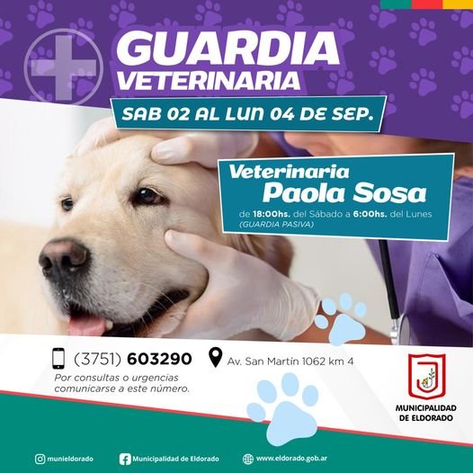 Información GeneralLocales Veterinaria de guardia en Eldorado para este fin de semana: Paola Sosa. Last updated: 2023/09/01 at 5:40 PM Somos Vos Share 0 Min Read SHARE Desde el sábado 2 hasta el lunes 4 de septiembre. You Might Also Like Detuvieron al principal sospechoso del millonario robo en una concesionaria en Puerto Iguazú Ofrecía trabajos para autos, cobraba y desaparecía: terminó detenido en Oberá Ola de calor: Misiones bajo alerta amarilla por temperaturas extremas Ola de calor: recomendaciones y cuidados para prevenir complicaciones en la salud El Pira Pytá celebró su 89° aniversario con una multitudinaria cena show TAGGED: Últimas Noticias Somos Vos 1 septiembre, 2023 Share this Article Facebook Twitter Whatsapp Whatsapp Telegram Copy Link Print